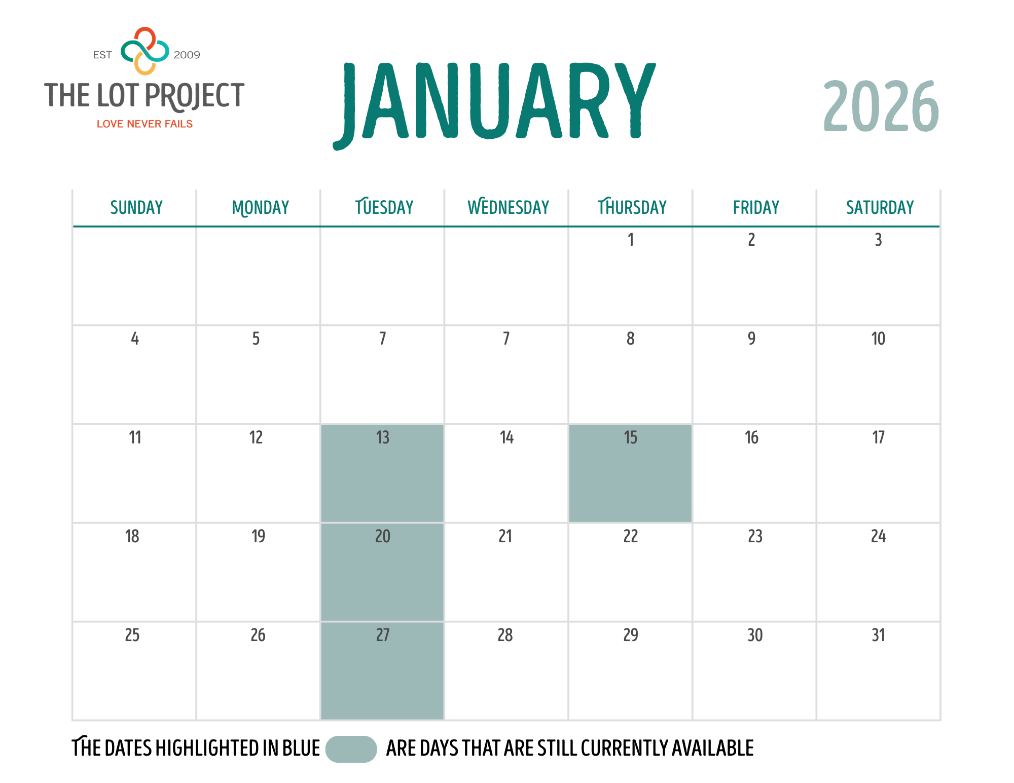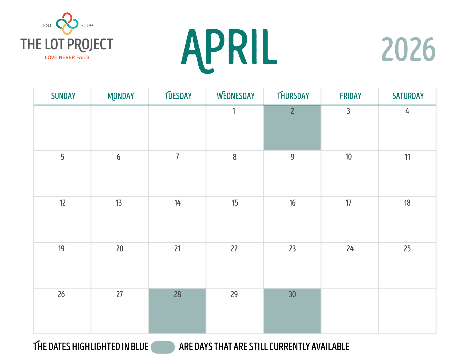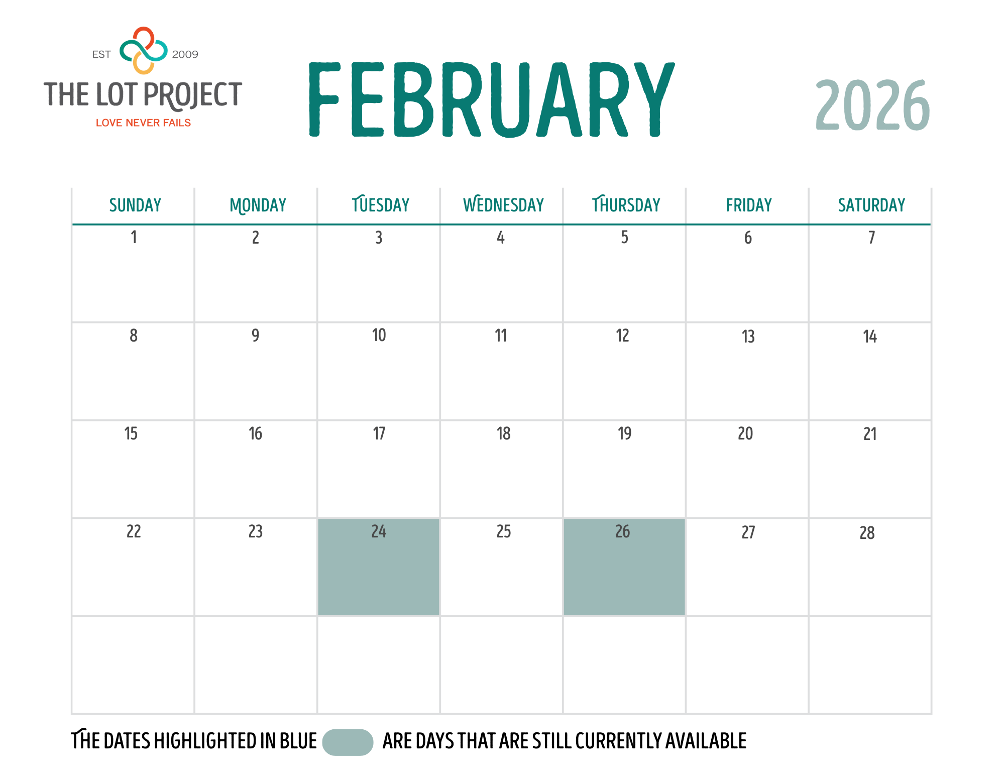 If you would like to sign up to provide a meal, please email info@thelotproject.com
